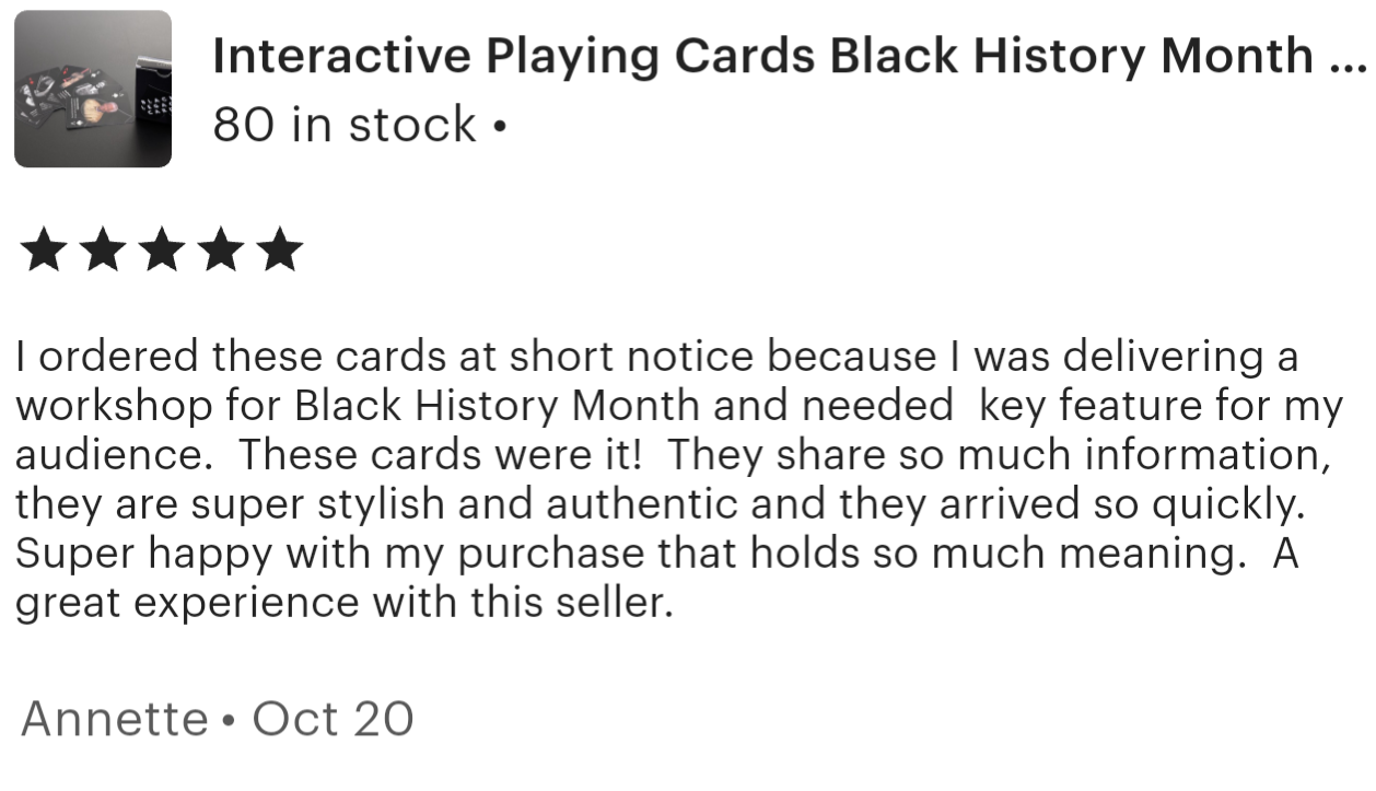 What’s more - the information on the cards and QR code allow you to play your own Black History trivia games and quizzes.